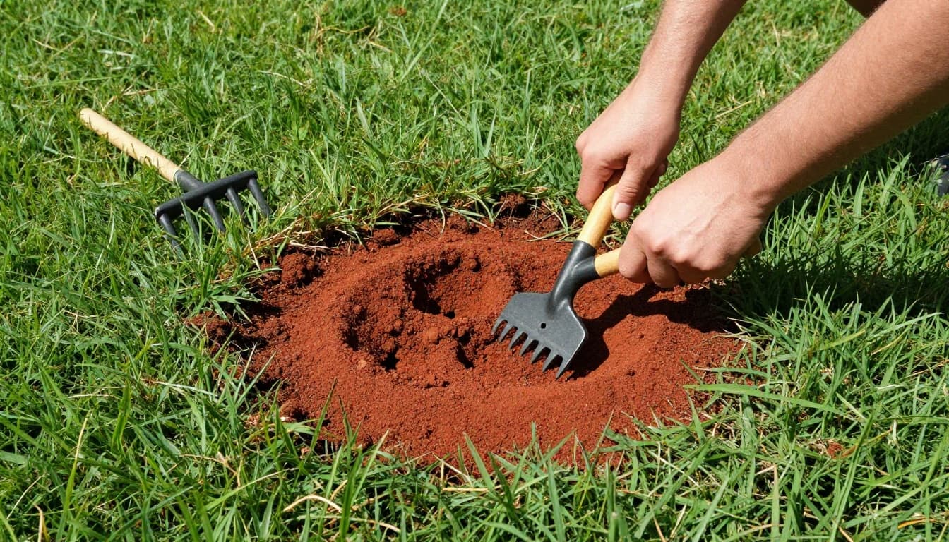 Step 2: Aerate cores. Rent a machine in spring or fall. Punch 2-3 inch holes. Pull plugs. Top-dress sand on Bermuda. Zoysia needs less. Do it yearly.