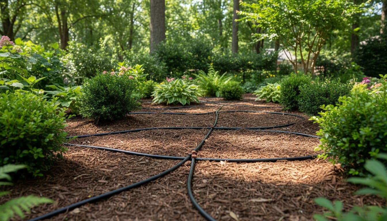 Costs run $450 to $650 for a quarter-acre bed area. Full yard hybrid? $1,200 to $2,900. Tubing and emitters cost little; install takes skill to avoid clogs.