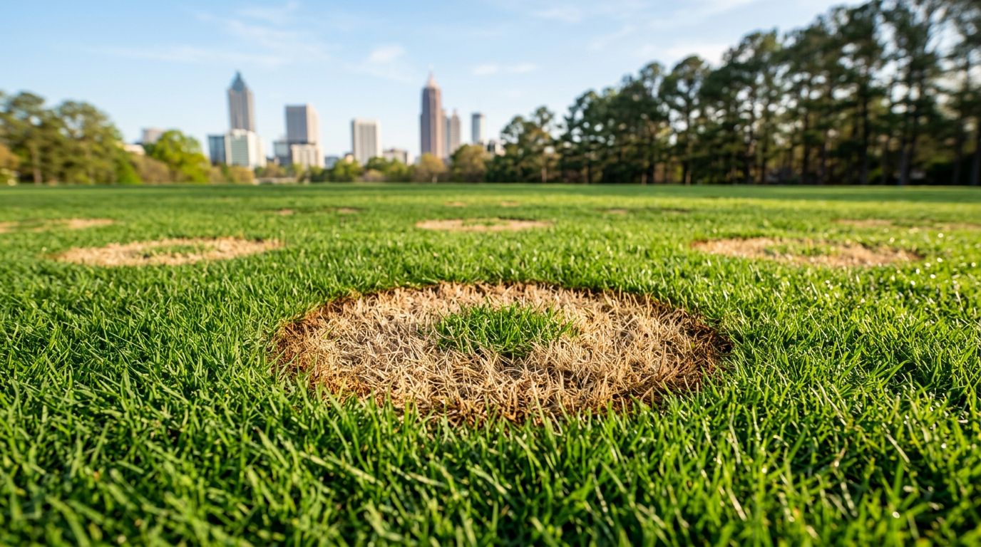 A common Atlanta clue: the lawn looks drought-stressed even when you've watered, because the roots aren't anchored anymore.