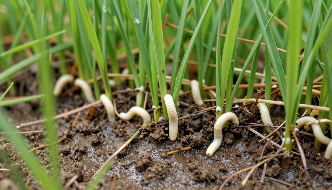 Larvae surface in minutes. They are creamy white, up to three-quarters inch long, with dark heads. Count them. Ten or more per yard means treat. Fewer? Monitor instead.