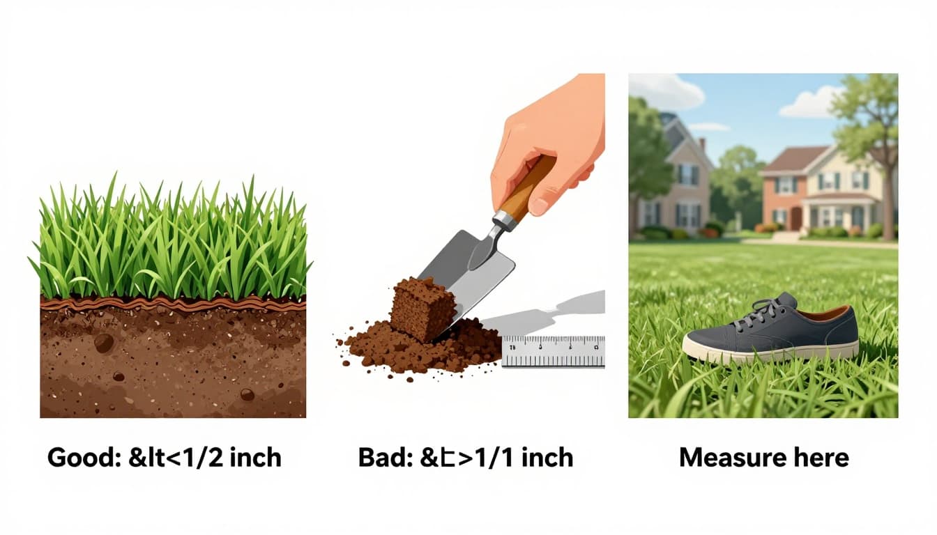 | Over 3/4 inch (or over 1 inch in spots) | Likely causing stress and shallow roots | Plan a careful dethatch/verticut, possibly in phases |