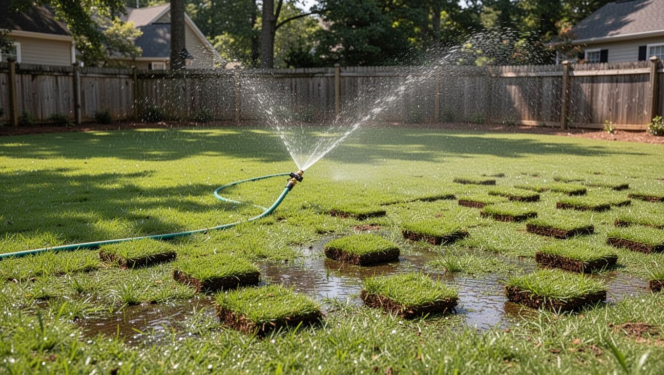 Water new areas gentle. Fertilize light after rooting. Mow high at first. Thick turf prevents return.