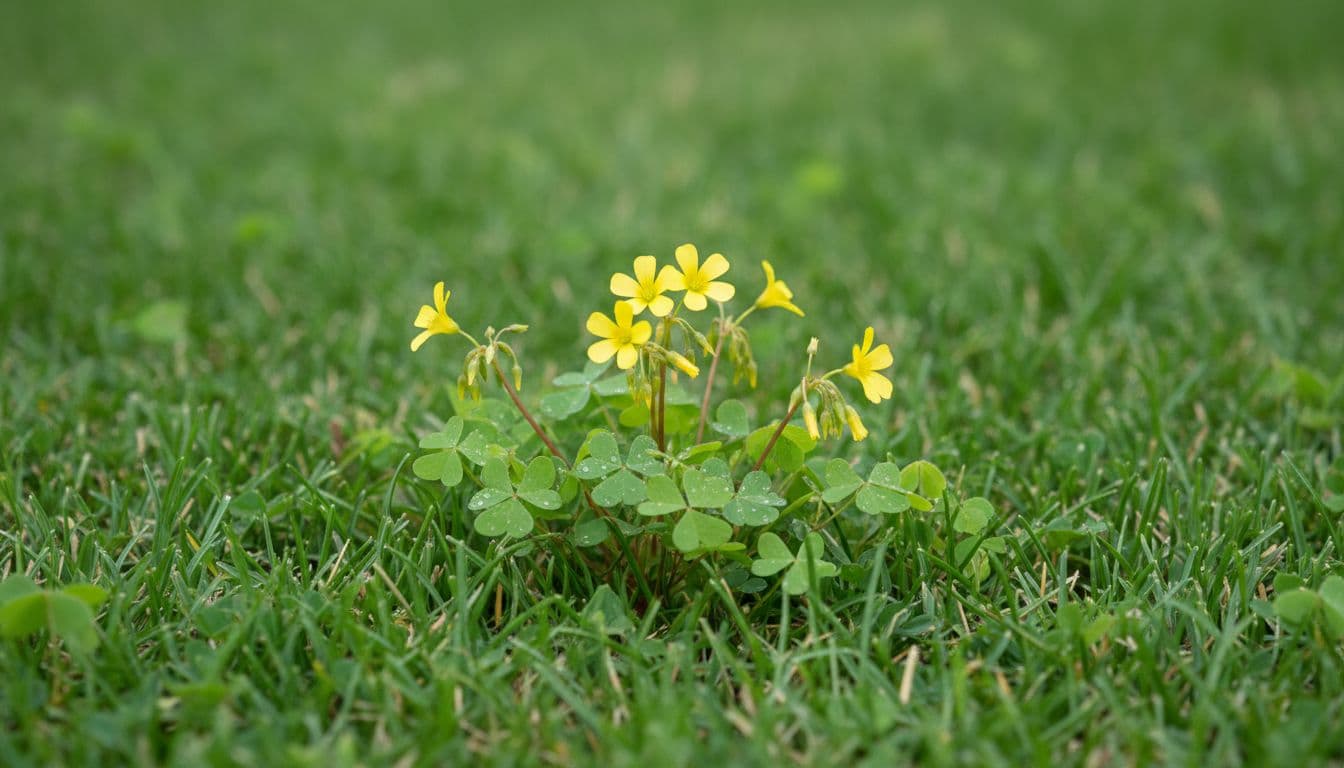 Overwatering worsens it. Oxalis thrives where grass drowns. Check irrigation; deep and rare beats shallow daily.